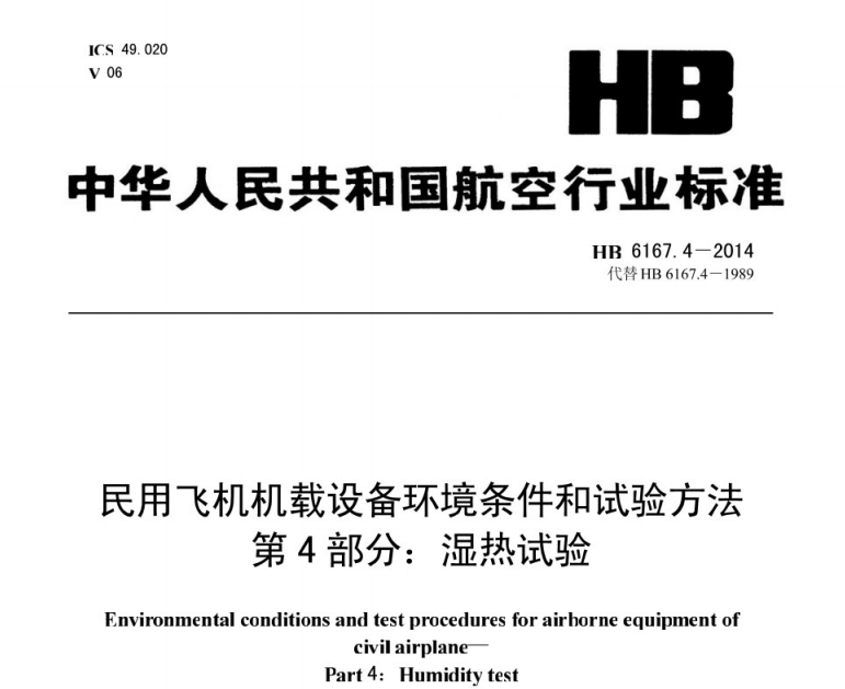 HB 6167.4-2014民用飞机机载设备环境条件和试验方法 第4部分:湿热试验